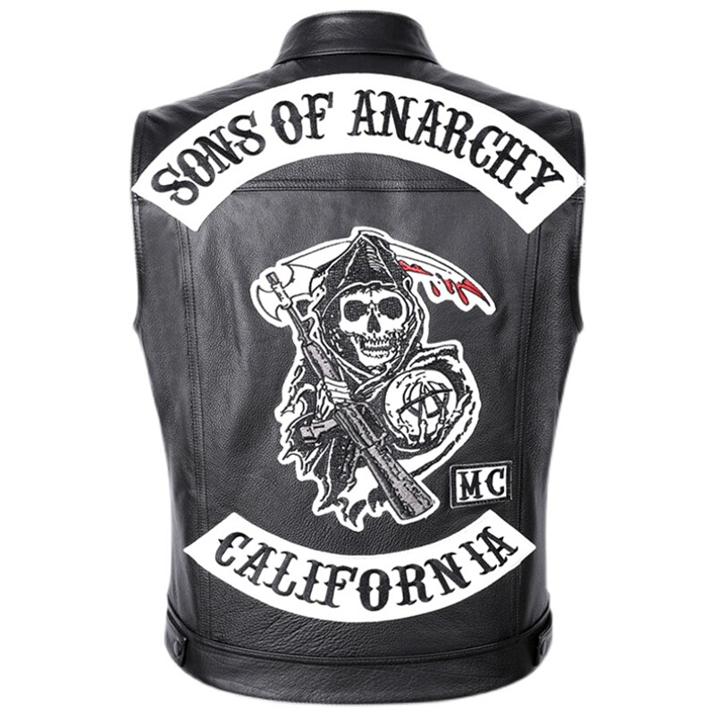 GAR BETHE Sons Of Anarchy Classical Motorcycle Biker Leather Vest Men Genuine Leather Sleeveless Jackets Real Cowhide Motorcade Vest 6XL