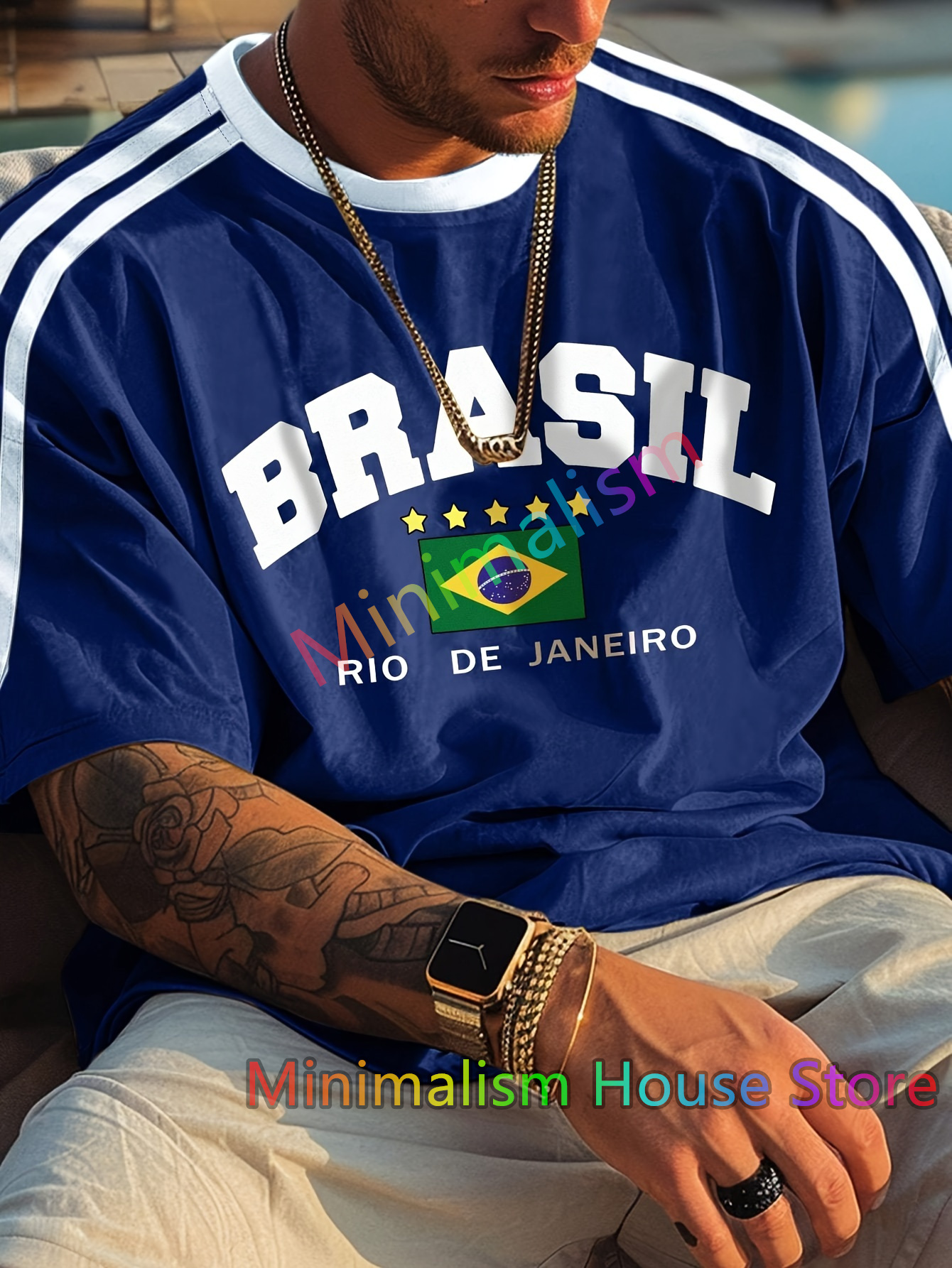 GAR BETHE 2024 New Summer Five-star Brasil Printed T-shirt For Men Short Sleeve Round Neck Tees Vintage Casual Mesh Jersey Oversized Tops