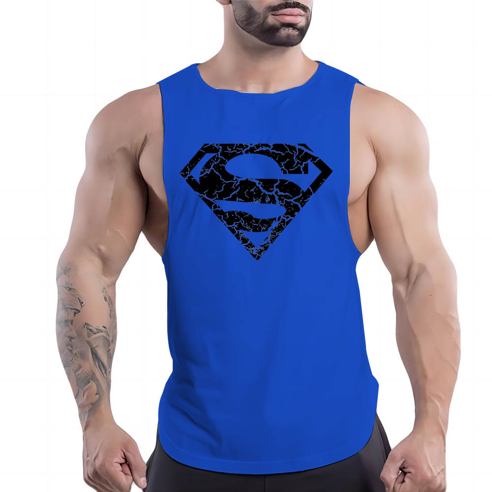 GAR BETHE Four Seasons New Fashion Outdoor Sports Style 2d Cartoon Print Men's Solid Color Vest Comfortable Lightweight Top Quick Dry
