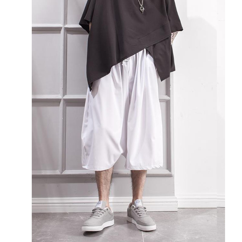 GAR BETHE Original Personality Loose Hip-hop Cropped Trousers Black White Low-grade Pants Wide Leg Pants Skirt Pants Trendy Youth Summer