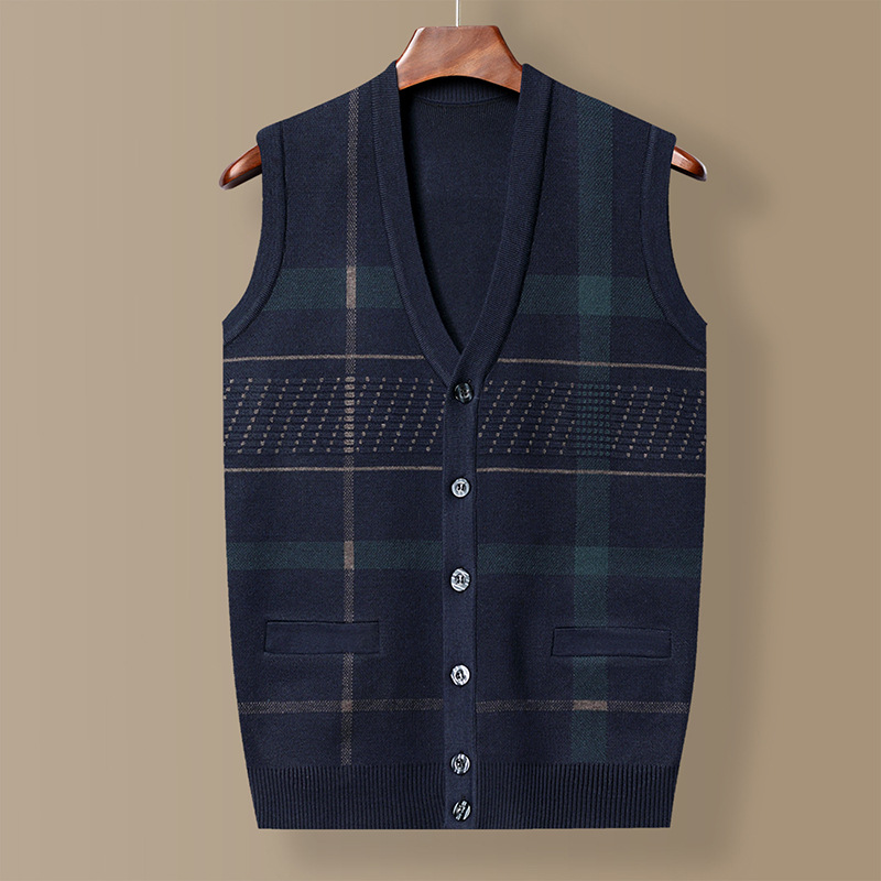 GAR BETHE Campania Dad Sweater Vest Men's Autumn And Winter Warm Sleeveless Waistcoat Middle-aged And Elderly Knitted Cardigan Vest