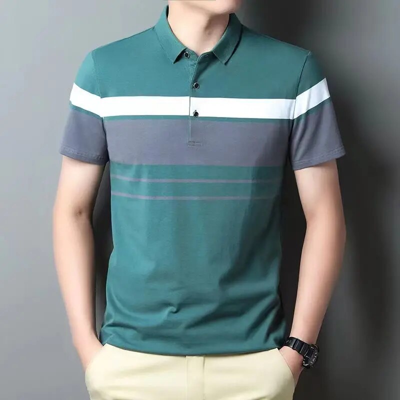 GAR BETHE Fashion Men Summer Striped Polo Shirts Streetwear Male Clothes New Short Sleeve Cotton T-shirt Business Casual Loose Tops 2024