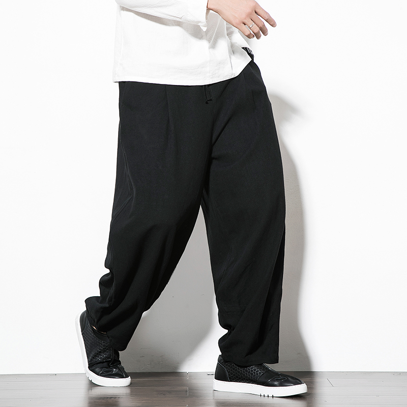 Japanese Loose Men's Cotton Linen Pants Male Summer Breathable Solid Color Linen Trousers Fitness Streetwear