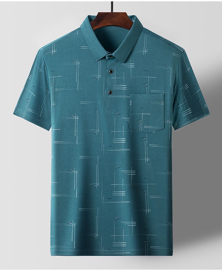 GAR BETHE Summer Men's Short Sleeve Ice Silk Lapel Polo Shirt Loose Striped Printed Pocket Pullover Fashion Vintage Casual Tops